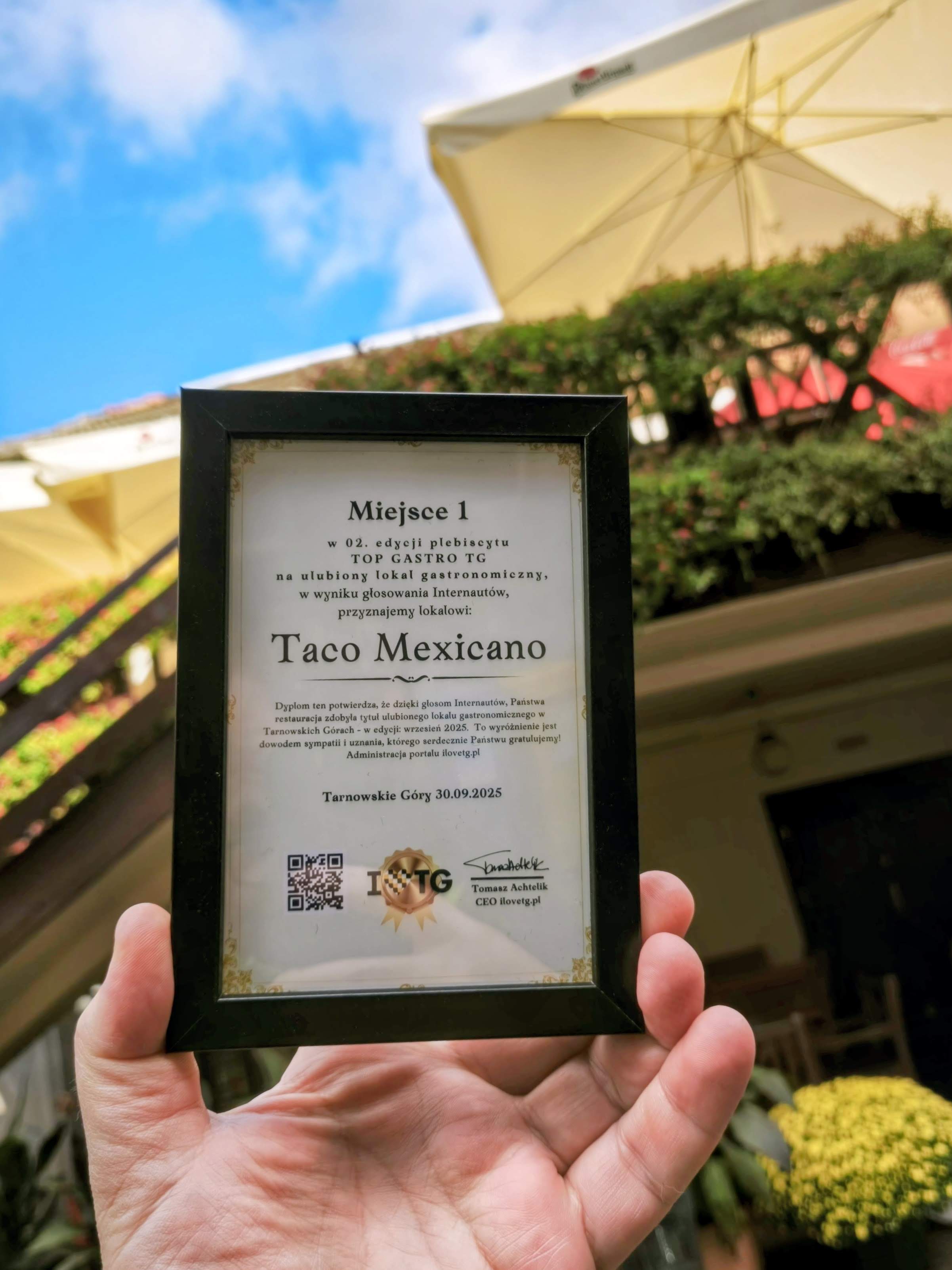 Dostarczyliśmy dyplom dla zwycięzcy naszego wrześniowego TOP GASTRO TG - TACO MEXICANO!