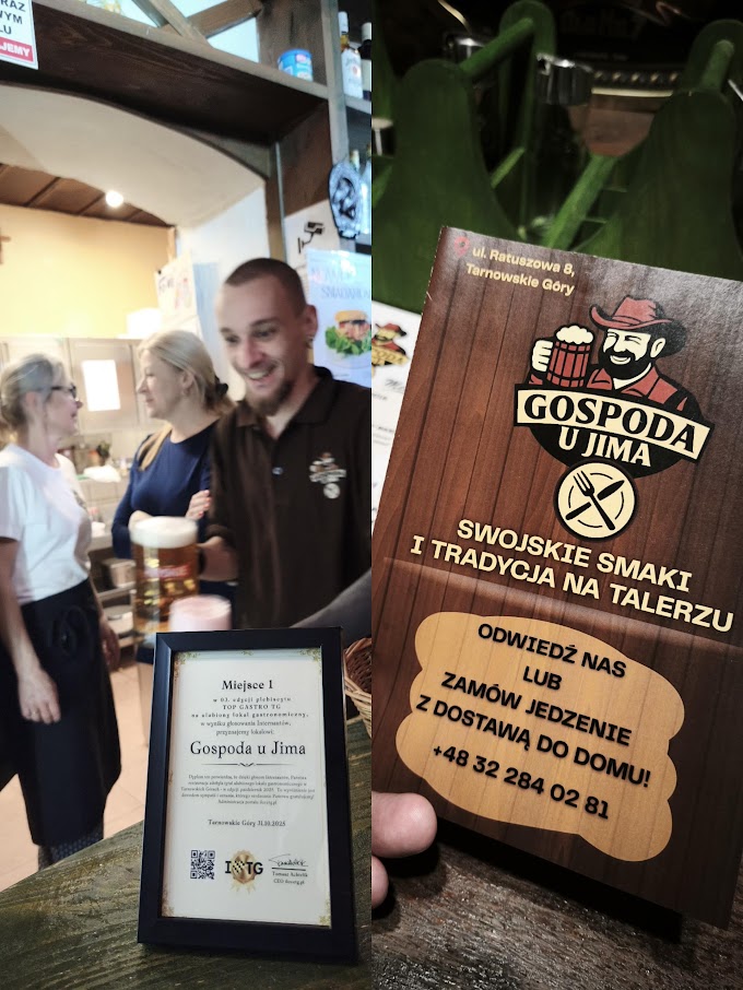 Dyplom przekazany, gwiazdka przyznana! Gratulacje dla Gospody u Jima za zajęcie pierwszego miejsca w TOP GASTRO TG w edycji październikowej!